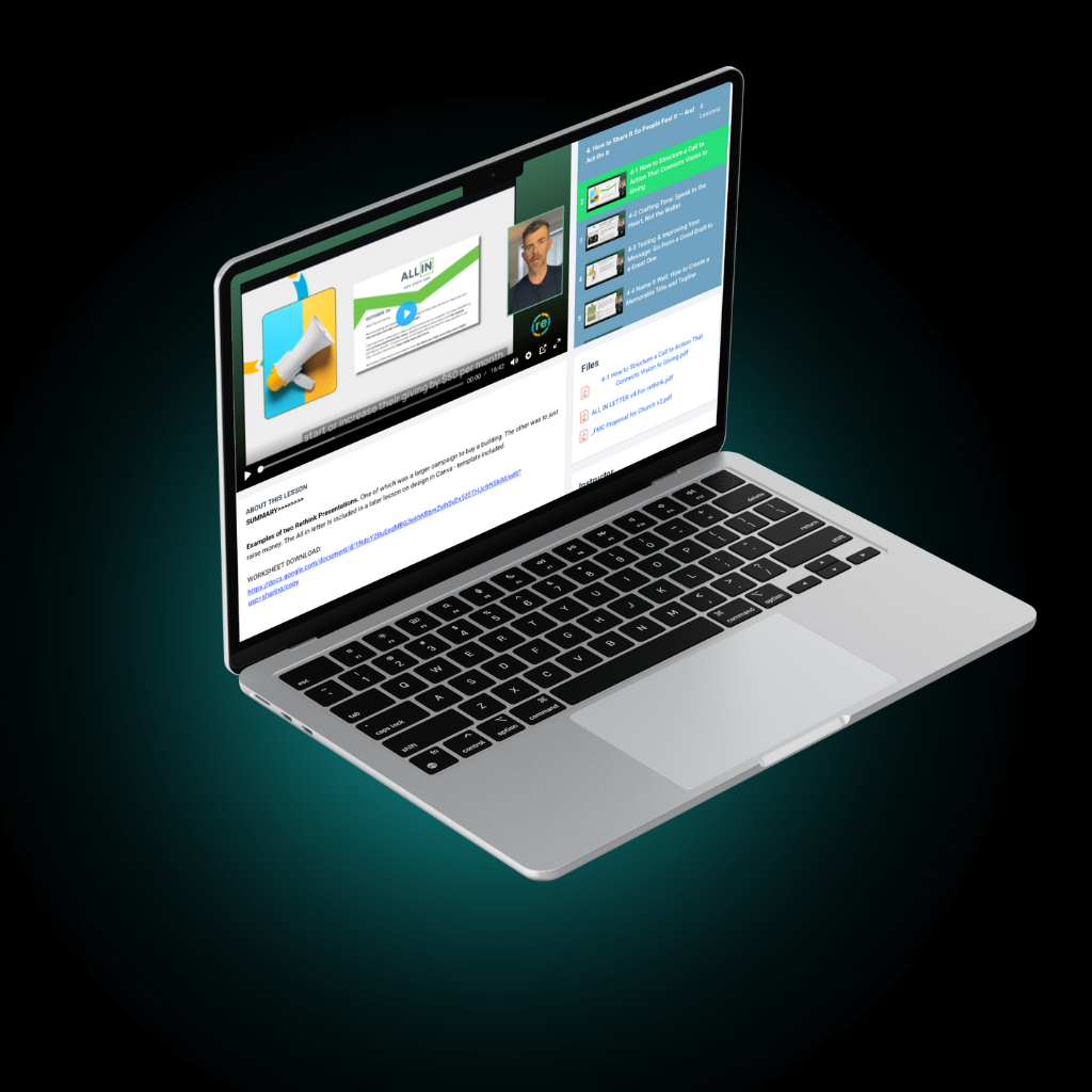 From board conversations to Sunday moments, emails, follow-up scripts, videos, and social posts - you’ll learn how to align every communication touchpoint, so your message is clear, consistent, and compelling across your entire ministry.